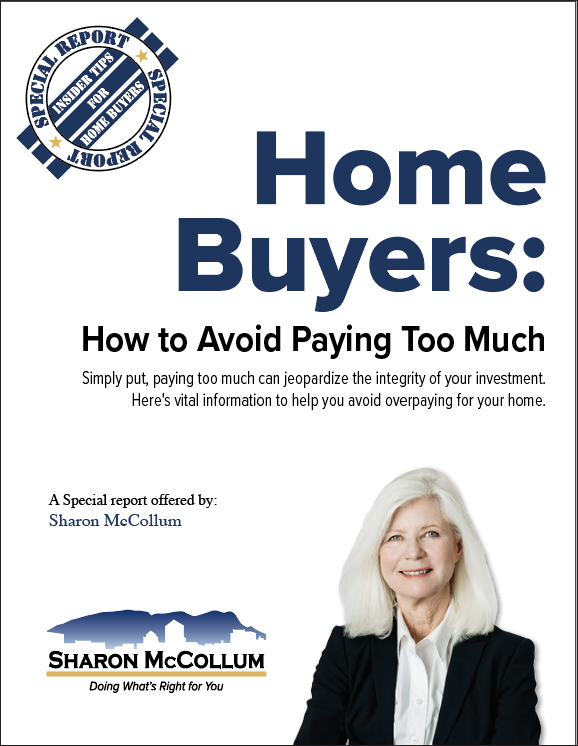 Let’s face it, buying a home is an emotional time filled with overwhelming decisions that have thousands of dollars riding on them. That’s why Sharon has put together a special report entitled “Home Buyers: How To Avoid Paying Too Much.” Home buyers, there is no learning curve when you venture out into the real estate market—there is no trial and error and the ramifications can be severe. Be sure to read this essential report before you sign on the dotted line and regret it for years to come.
